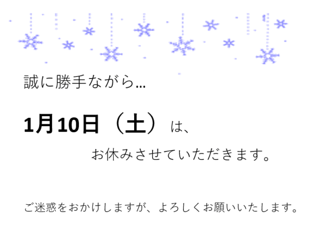 1/10(土) 臨時休業のお知らせ