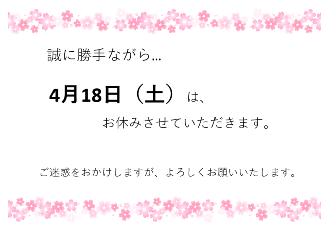 4/18(土) 臨時休業のお知らせ
